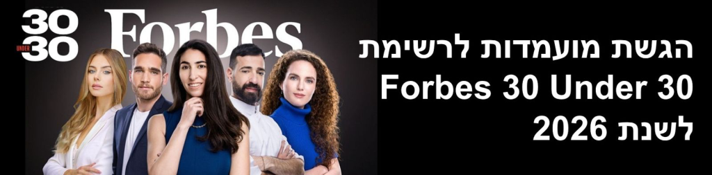 יוצאים לדרך. ההרשמה לרשימת הצעירים והצעירות היוקרתית והמבוקשת בעולם – פתוחה כעת לקבלת מועמדויות. במהלך הרבעון הראשון של השנה הבאה נפרסם במגזין מיוחד את נבחרת הצעירים המבטיחים של פורבס ישראל לשנת 2026 – זו השנה ה-11 ברציפות.